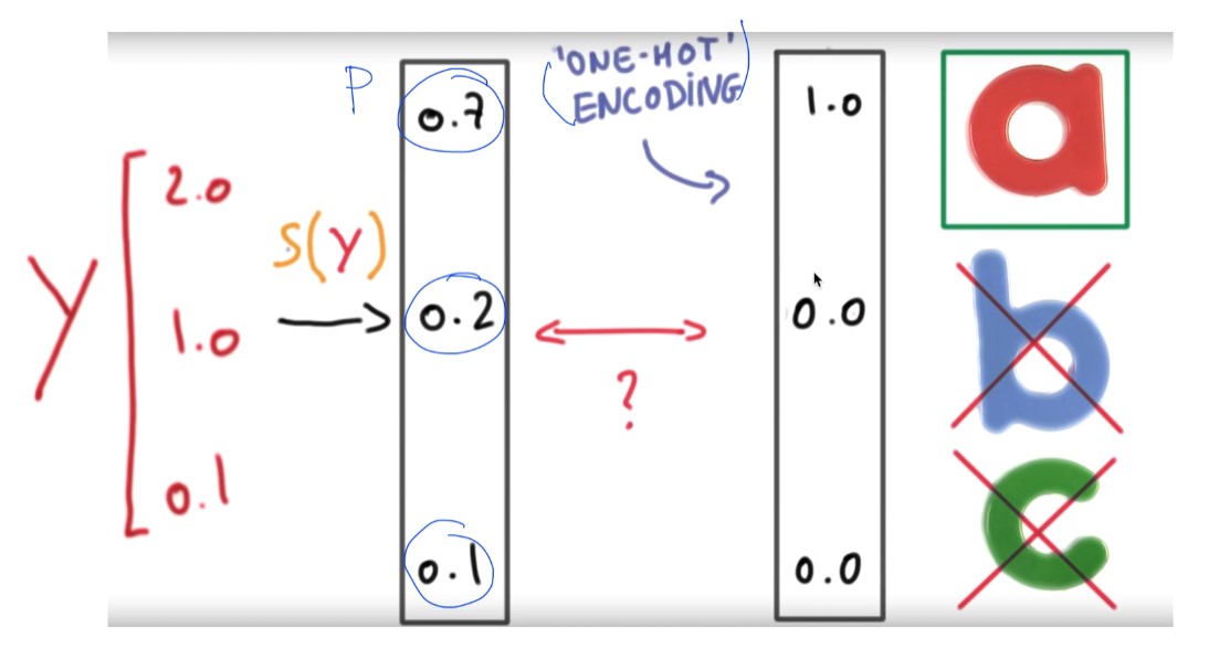계산을 통해 나온 값(= 확률)으로 a, b, c 중 어느 것인지 구분 가능하다. 확률 높은 것을 남기고 다 0으로 만들어 버리는 것은 one-hot encoding이라고도 한다.