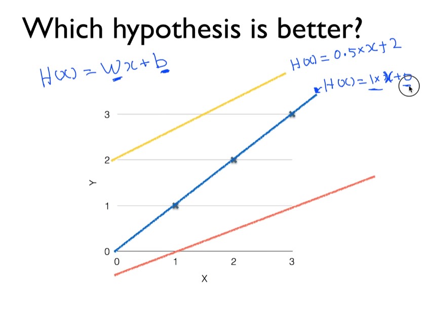 학습의 목표 : cost값을 가장 작게 하는 W와 b를 찾는 것!